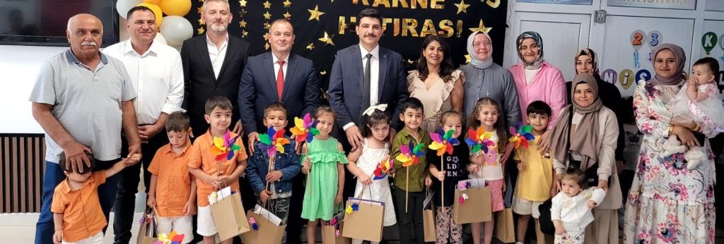Okulumuzda yapılan karne törenine Kaymakamımız Sayın Furkan Türkay KAYIŞ,İlçe Miili Eğitim Müdürümüz Sayın Mehmet DERİLMEK,Şube Müdürümüz Sayın Serkan ŞEKER ve kıymetli velilerimiz katılarak karne heyacanımıza ortak oldular.Öğrencilerimizin sağlıklı,huzurlu ve bol eğlenceli bir yaz tatili geçirmelerini temenni ediyoruz.Yeni eğitim-öğretim yılına enerji,azim ve umut dolu bir şekilde sağlıkla ve mutlulukla başlamalarını diliyoruz...